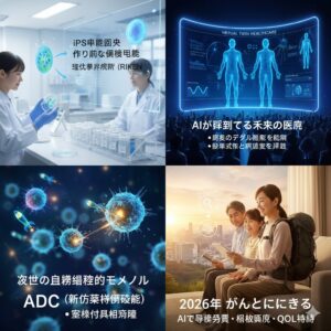 2026年のトレンドは、単に「がんを治す」だけでなく、**「AIで早期に見つける」「自分に最適な薬をすぐ選ぶ」「生活の質(QOL)を保ちながら治す」**というステージに移行しています。これらの技術革新と制度の見直しにより、「がんと共に生きる」という選択が、これまで以上に現実的なものとなってきています。
